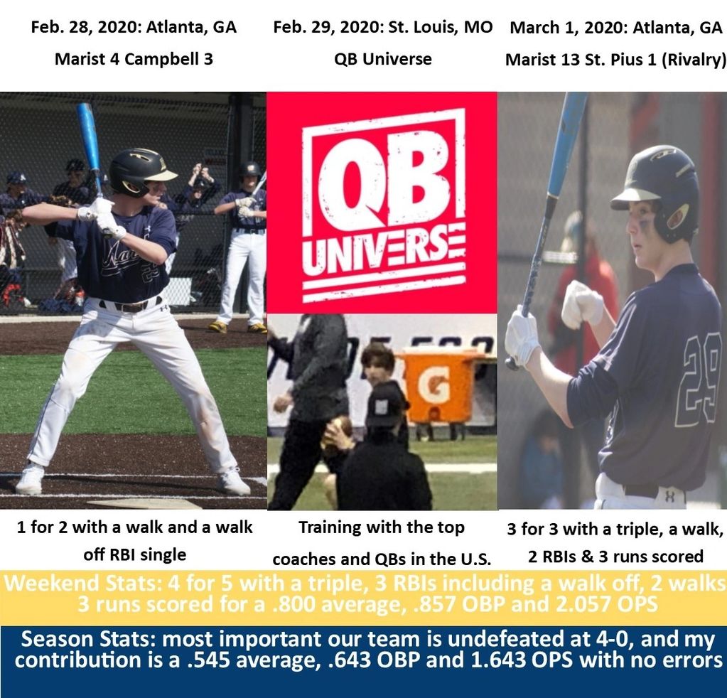 Friday: Baseball in Atlanta, GA Saturday: QB Universe in St. Louis, MO Sunday: Baseball in Atlanta, GA Thank you Delta Airlines!